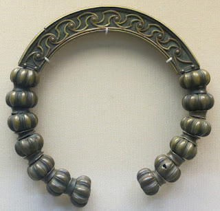Se trata de un torque, es decir, un collar rígido y redondo que se encuentra abierto en la parte inferior.